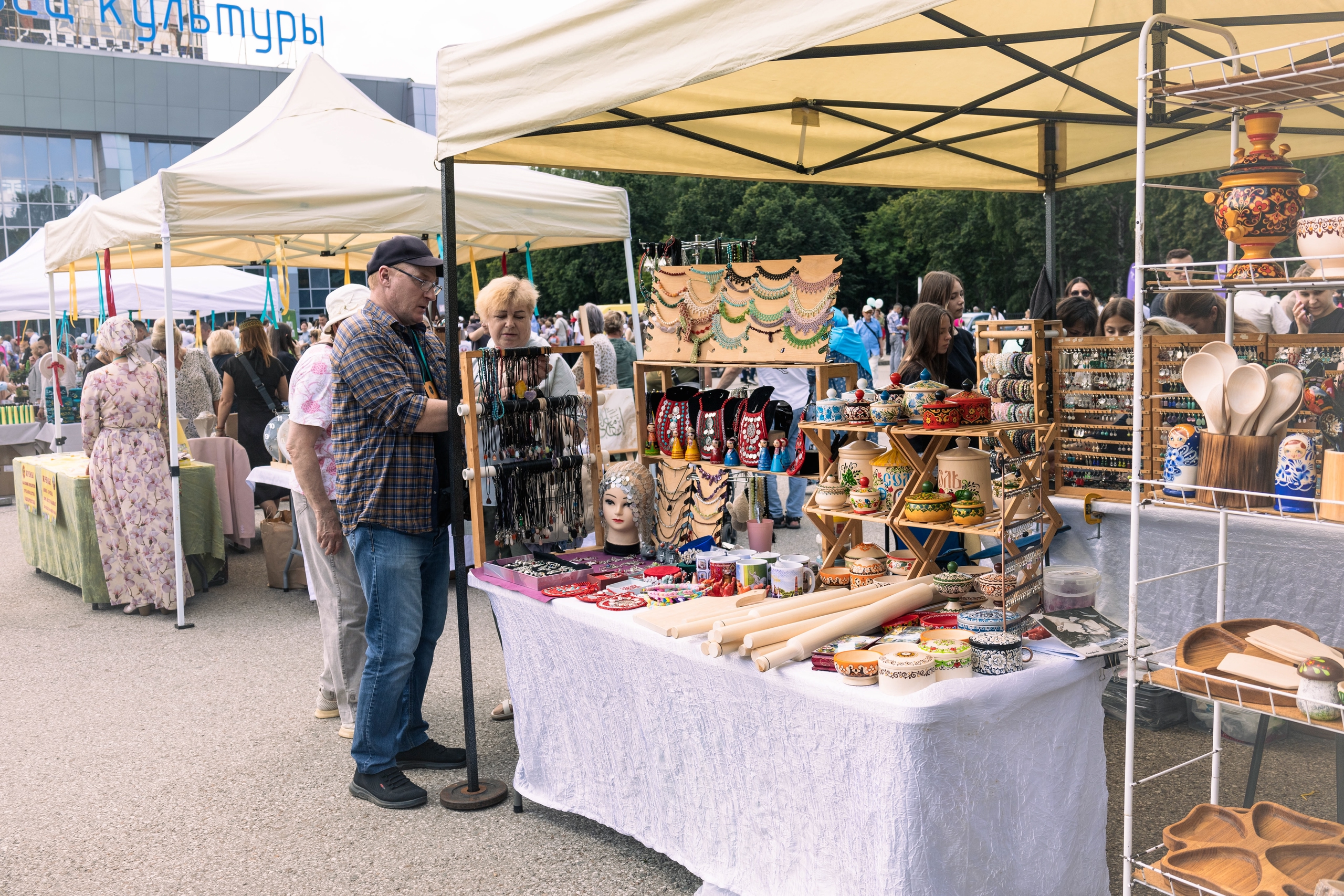 Центром притяжения стала уличная ярмарка ремесленников. Параллельно в здании ГДК проходил форум мусульманской общины с участием главы города, а также лекторий, организованный местными врачами, — он собрал в основном женскую аудиторию. Мы тоже не остались в стороне: рассказывали гостям о наших проектах и возможностях, которые открывает мусульманская ипотека.